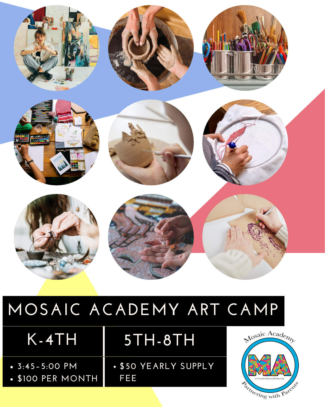 Mosaic Academy is proud to offer brand new After School Programs beginning in 2025! Scroll down to find flyers for each program containing helpful information, as well as a downloadable copy of the sign up form.
